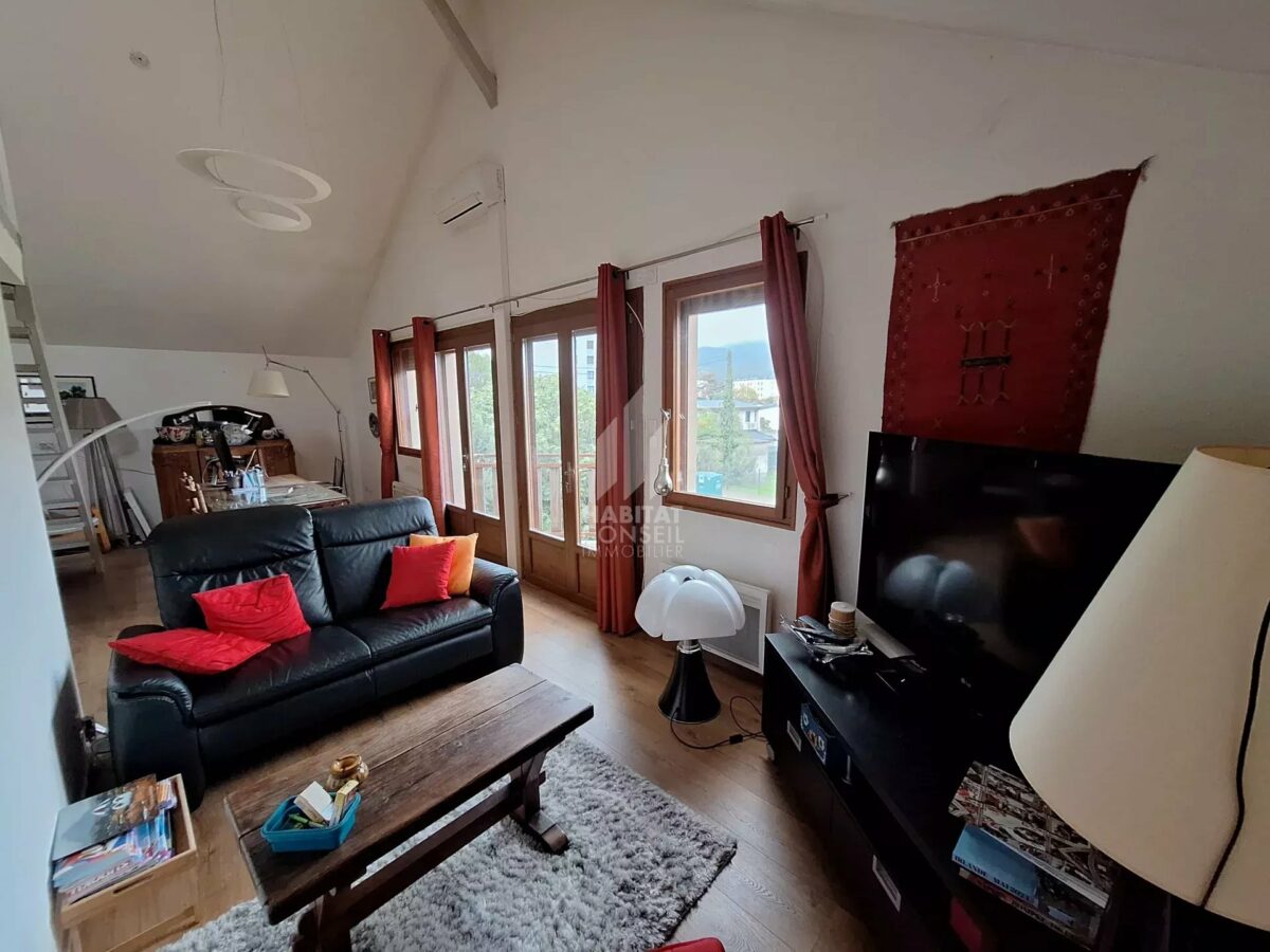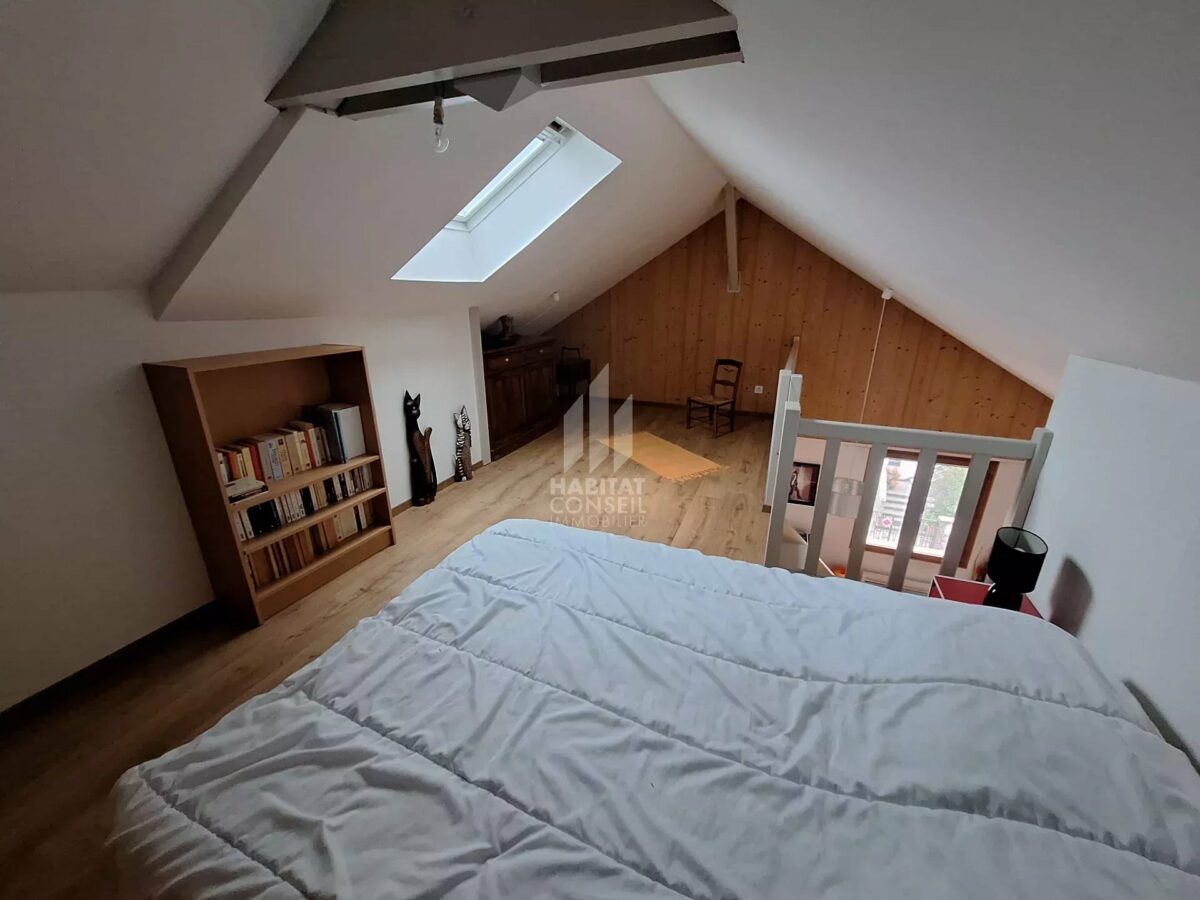 Habitat Conseil Immobilier vous propose en exclusivité ce superbe appartement 4 pièces (avec 2 chambres et un bureau) atypique de plus de 98 m² (120 m² au sol), niché au dernier étage d’une maison en résidence pavillonnaire sécurisée, avec interphone et portail. Idéalement situé, il offre un accès rapide aux axes routiers, aux commerces et aux établissements scolaires.