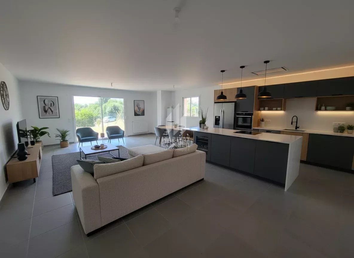 Une belle pièce de vie lumineuse avec une cuisine ouverte sur un séjour de plus de 48 m² donnant accès à une agréable jardin de plus de 112 m² avec vue agréable afin de profitez des bons moments en famille ou entre amis