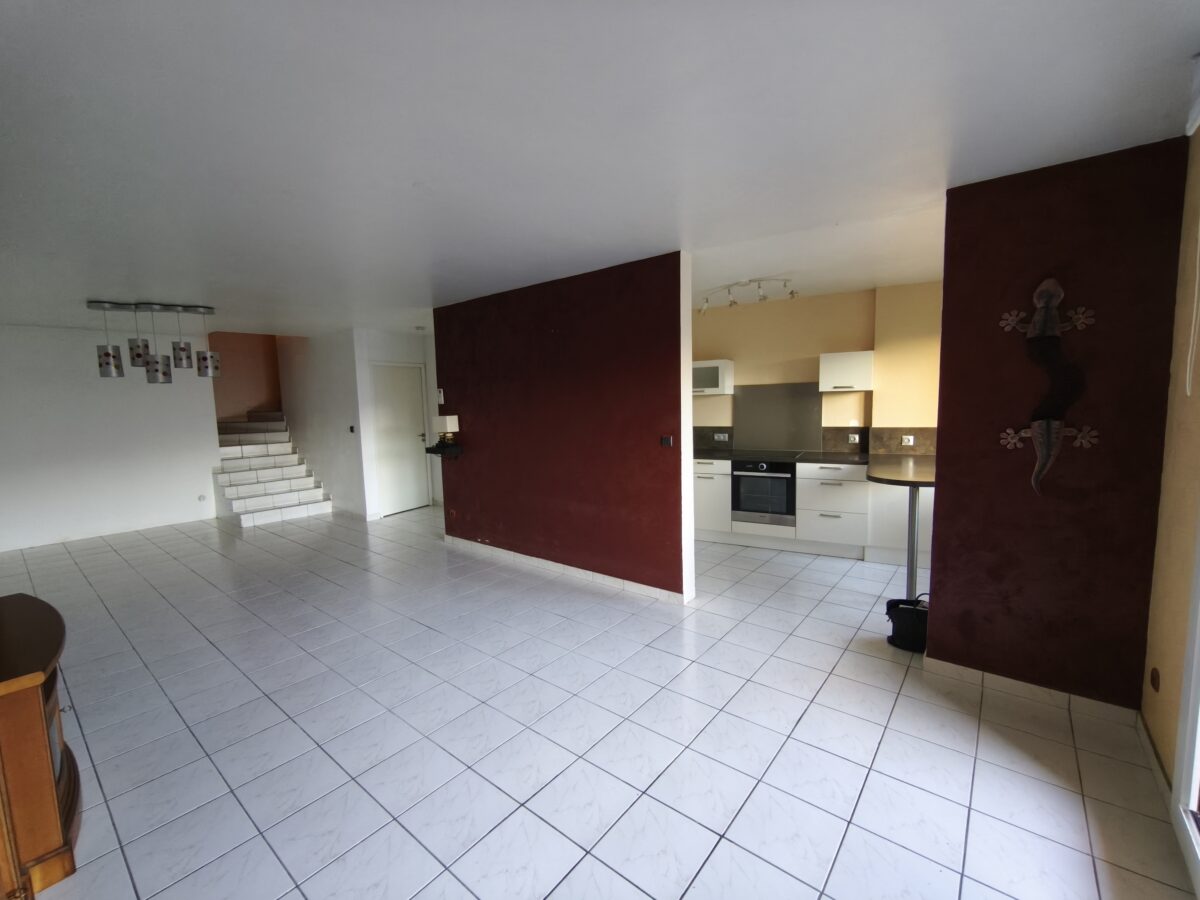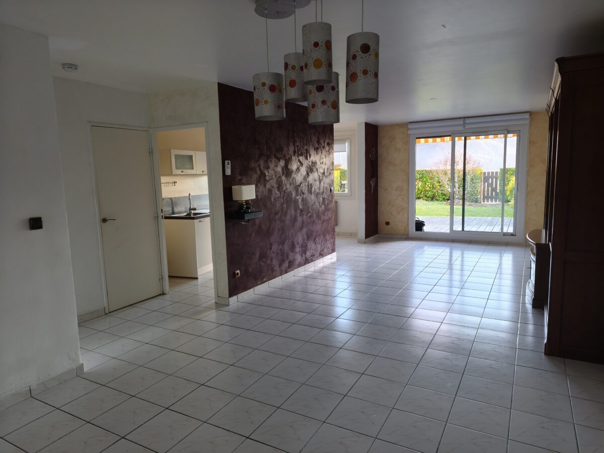 La pièce de vie lumineuse, d’environ 44 m², comprend une cuisine semi-ouverte de 10 m² et un séjour, salle à manger d’un peu plus de 33 m², donnant accès à un jardin privatif de plus de 96 m² avec vue agréable, idéal pour les moments en famille ou entre amis.