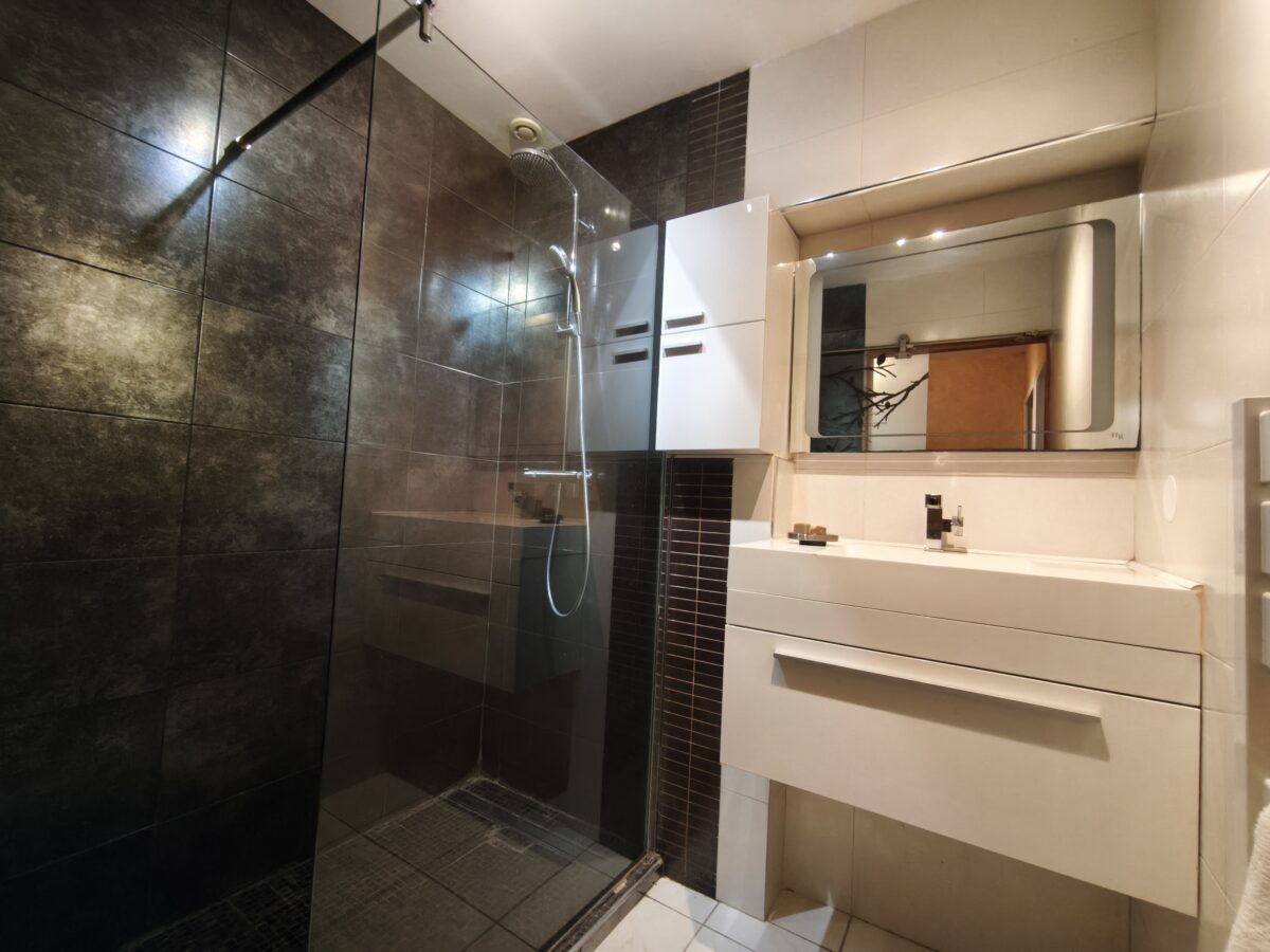 Cet appartement se compose d’une belle entrée qui dessert 2 chambres avec un dressing, une salle d’eau et un toilette.